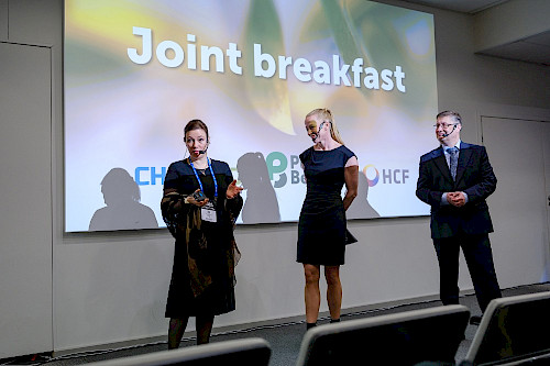 Ensimmäinen näyttelypäivä käynnistyi Pulp & Beyondin, Chembio Finlandin ja Helsinki Chemicals Forumin yhteisellä aamiaistilaisuudella, jossa kuultiin kolme keynote‑puheenvuoroa sekä teollisuuden että koulutuksen näkökulmista ja suomalaisista ja EU-tason tulevaisuuden näkymistä.